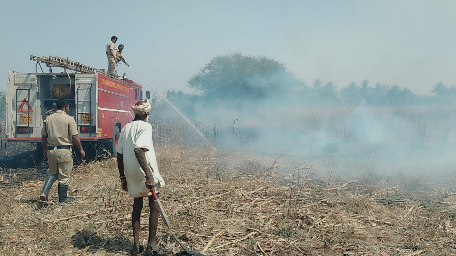 ಬಳಿಕ ಸ್ಥಳಕ್ಕೆ ಆಗಮಿಸಿದ ಅಗ್ನಿಶಾಮಕ ದಳದ ಸಿಬ್ಬಂದಿ ರೈತರೊಂದಿಗೆ ಸೇರಿ ಬೆಂಕಿ ನಂದಿಸುವ ಕಾರ್ಯಾಚರಣೆಯಲ್ಲಿ ತೊಡಗಿ ಬೆಂಕಿಯನ್ನು ಹತೋಟಿಗೆ ತಂದರು. ಇದರಿಂದಾಗಿ ಪಕ್ಕದ ತೋಟಗಳಿಗೆ ಬೆಂಕಿ ವ್ಯಾಪಿಸುವುದು ತಪ್ಪಿತು.