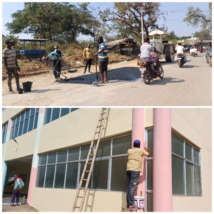 ಪ್ರವಾಸಿ ಮಂದಿರಗಳ ಅವ್ಯವಸ್ಥೆ ರಸ್ತೆ ಗುಂಡಿಗಳ ಮುಚ್ಚುವ ಬಗ್ಗೆ ಅಧಿಕಾರಿಗಳಿಗೆ ಮನವಿ ಮಾಡಿ, ಮೊಬೈಲ್ ಕರೆ ಮಾಡಿದರು ಕ್ಯಾರೆಯನ್ನದ ಅಧಿಕಾರಿಗಳು ಧಿಡೀರನೇ ಎಚ್ಚೆತ್ತು ಕಾರ್ಯಪ್ರವೃತ್ತ ಆಗಿರುವ ಅಧಿಕಾರಿಗಳು ಹಗಲು ರಾತ್ರಿ ಎನ್ನದೆ ಗುಂಡಿ ಮುಚ್ಚುವ ಹಾಗೂ ಕಚೇರಿಗಳಿಗೆ ಬಣ್ಣ ಹಚ್ಚುವ ಕಾರ್ಯದಲ್ಲಿ ತೊಡಗಿದ್ದಾರೆ.