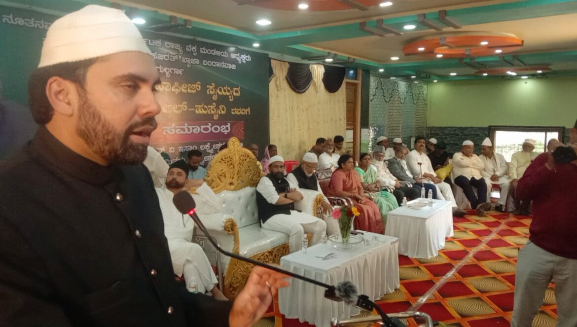 ನೂತನವಾಗಿ ಆಯ್ಕೆಯಾದ ಕರ್ನಾಟಕ ರಾಜ್ಯ ವಕ್ಫ್ ಮಂಡಳಿಯ ಅಧ್ಯಕ್ಷರು ಹಾಗೂ ನಶೀನ್ ಹಜರತ್ ಖ್ವಾಜಾ ಬಂದೆನವಾಜ ಗುಲ್ಬರ್ಗಾ ಹಾಗೂ ಹಾಫೀಜ್ ಸೈಯ್ಯದ ಮೊಹಮ್ಮದ ಅಲಿ ಅಲ್- ಹುಸೈನಿ ರವರಿಗೆ ಸನ್ಮಾನ ಸಮಾಜರಂಭದಲ್ಲಿ ಪಾಲ್ಗೊಂಡು ಮಾತನಾಡಿದರು.