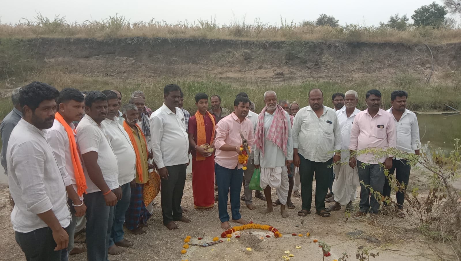ಲಕ್ಷ್ಮೇಶ್ವರ: ತಾಲೂಕಿನ ಸಂಕದಾಳ ಗ್ರಾಮದ ನಾಗಪ್ಪ ಹರಿಜನ ಅವರ ಜಮೀನಿಗೆ ಹೊಂದಿಕೊಂಡು ಇರುವ ಹಳ್ಳಕ್ಕೆ ತಡೆಗೋಡೆ ನಿರ್ಮಾಣ ಮಾಡಲು ಶಾಸಕ ಚಂದ್ರು ಲಮಾಣಿ ಚಾಲನೆ ನೀಡಿದರು.